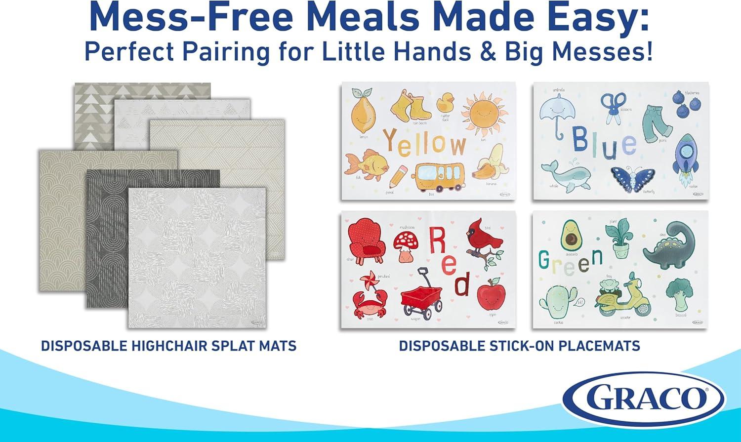 Graco Baby Disposable Splat Mats – 60 Count (6 Designs, 10 of Each), 47″ x 40″, Biodegradable Floor Protector for Mealtime, Under High Chair, Home & Restaurant Use(Hudson 60 Pack)